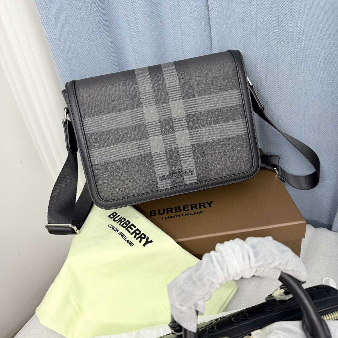 .最新款邮差来了??精致立挺设计,装饰 B家格纹,搭配皮革边饰和品牌??時尚與實用兼具簡齊 樺木棕跟深灰色都超好看! 尺寸25.5 × 6.5 x 21.5cm. 款号 8413