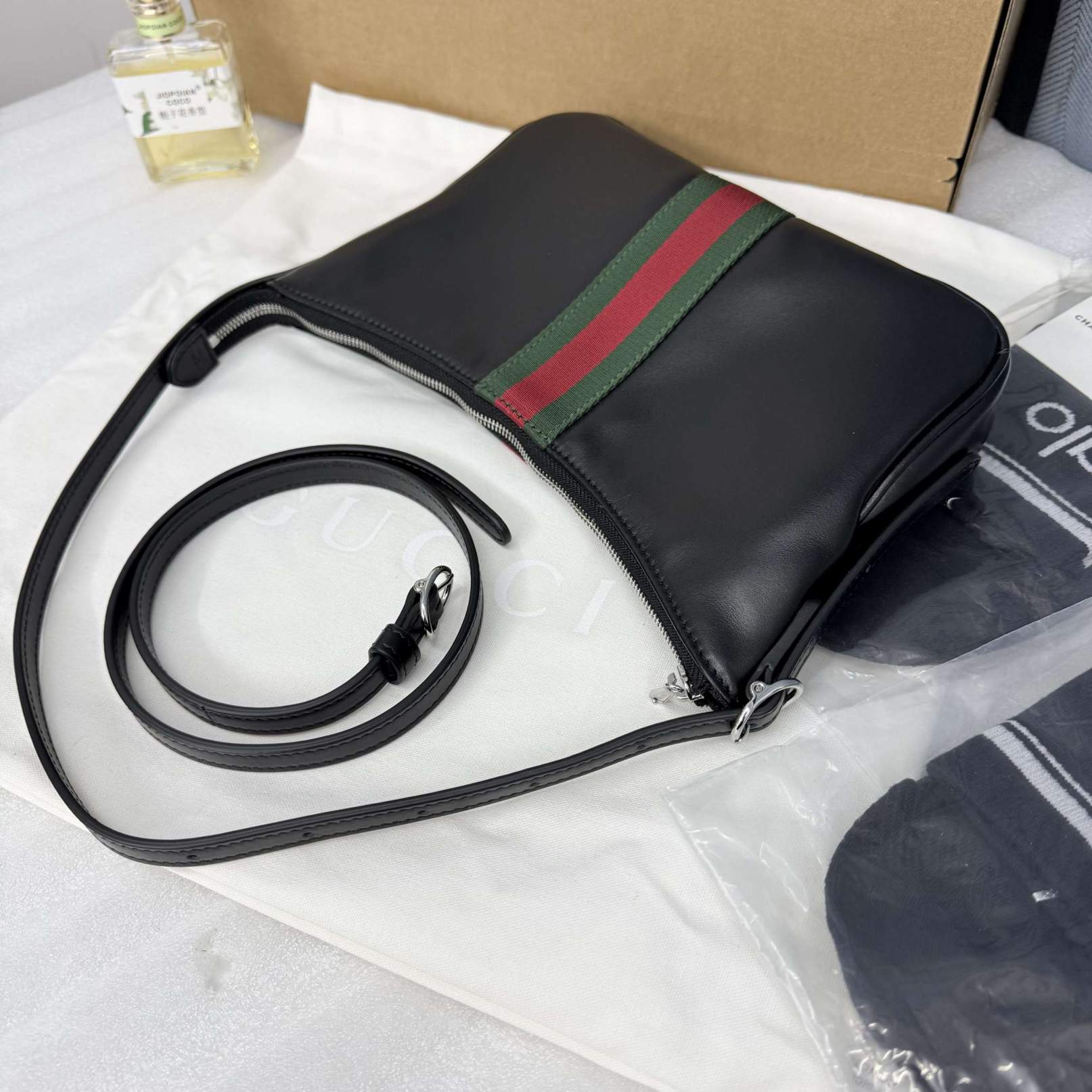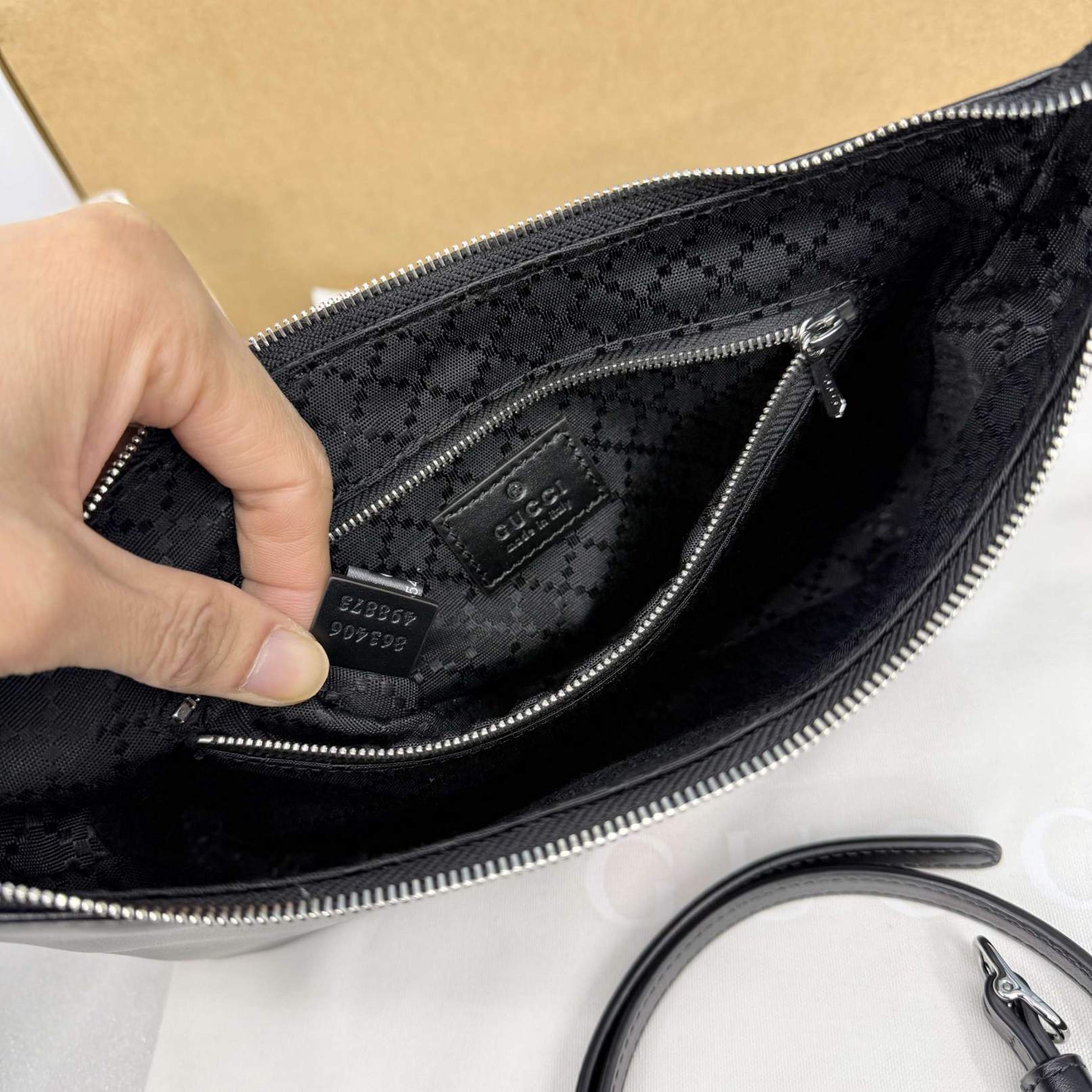 ??《配全套原厂专柜包装》??Gucci新系列杀疯了!Demna的设计眼光绝了 时装周黑马非Gucci莫属!Demna带来的“La Famiglia”系列,把Gucci的复古奢华玩出了新高度。 新品的每一处细节都透着设计师的巧思,经典元素被重新演绎后更具辨识度。 从日常腋下包到晚宴流苏包,风格跨度大却又统一得很高级。 白色皮革 棕色绵麻衬里 内部:1个拉链袋 型号:863406。 尺寸:22.5x12.5x3.5cm。 颜色:白色全皮。 意大利创作