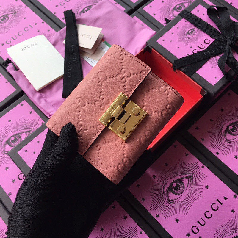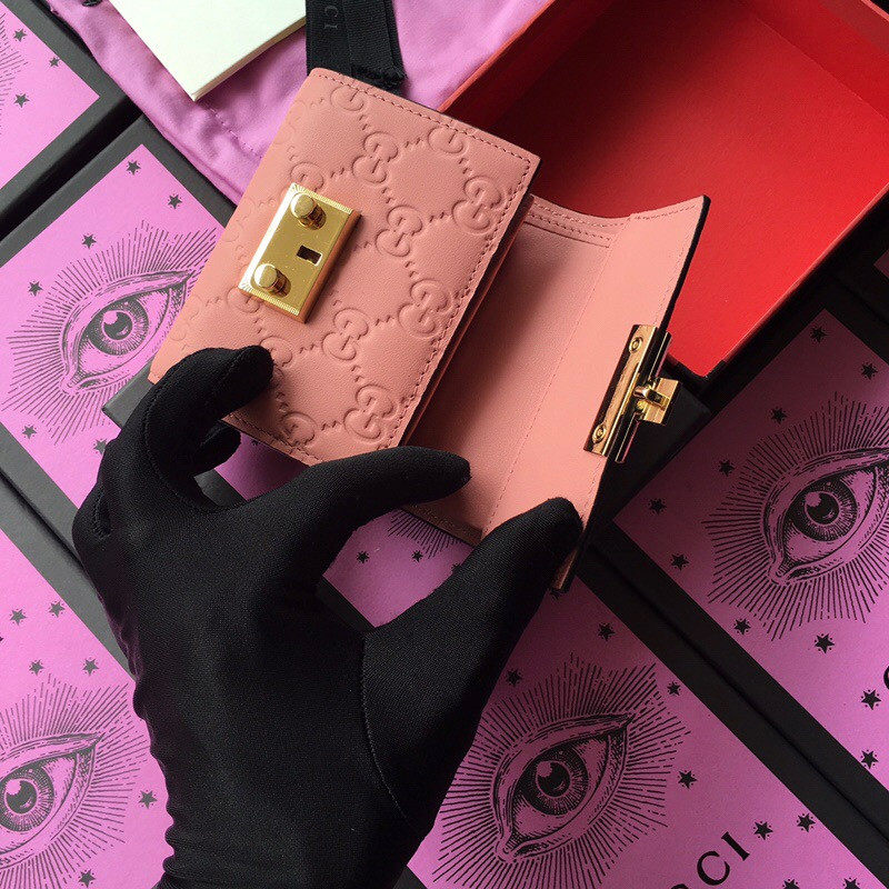 GUCCI古奇 16秋冬新款GG三折padlock拼皮短款钱包453155