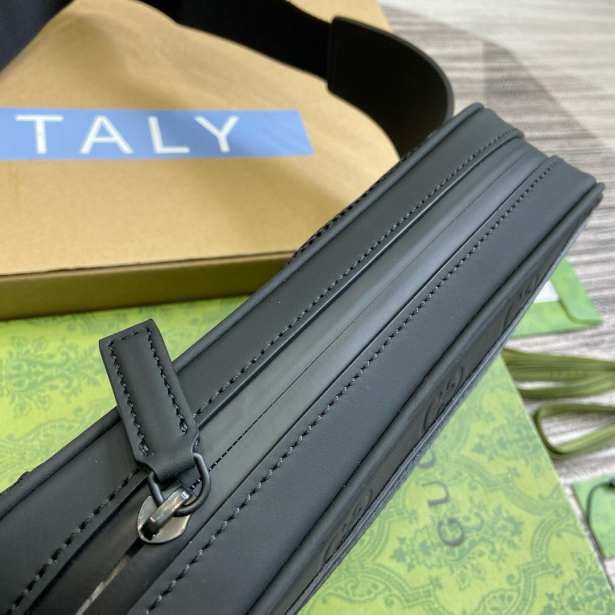 ??跑量价】 简介:GG橡胶效果肩背包。一系列以黑色橡胶效果皮革打造的男士迷你包袋闪亮登场,透过现代美学视角为日常小配饰注入新鲜活力。2024早春系列推出的全新材质为这款基础单品注入现代气息 ??型号?771422 ??材质? 采用专柜质感黑色超级双G牛皮压花皮革·棉麻混纺衬里·后部饰加衬网纱。 ??尺寸?24x24x5cm19x 11x 4