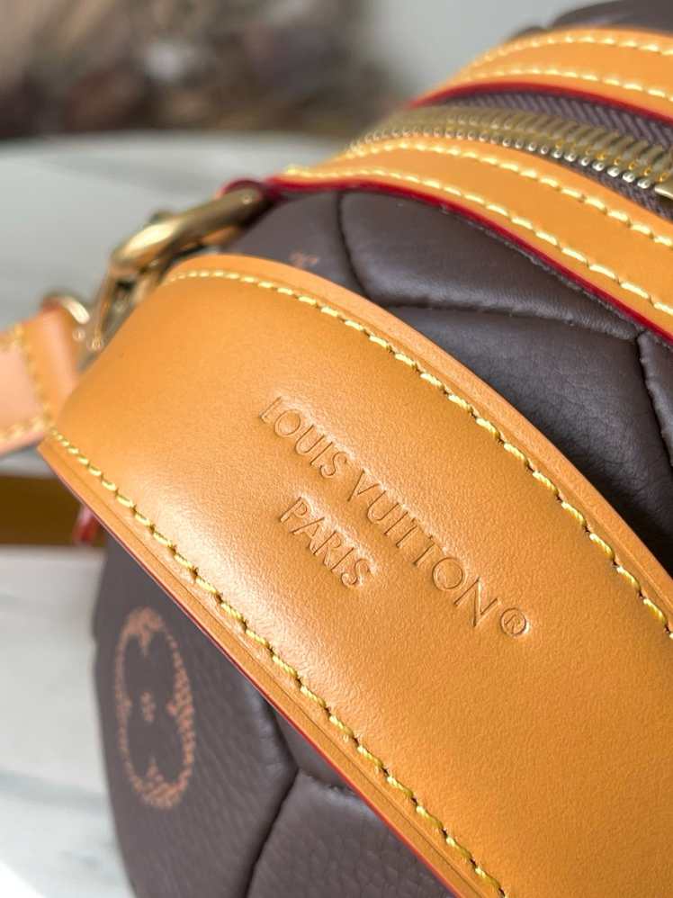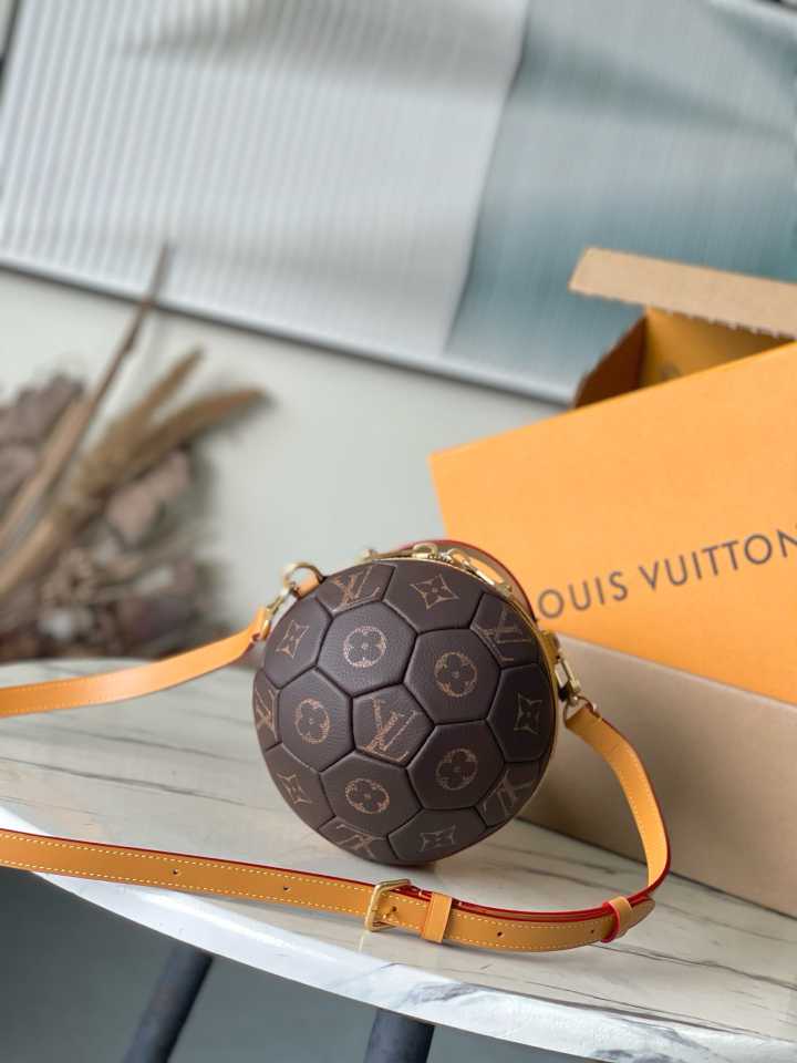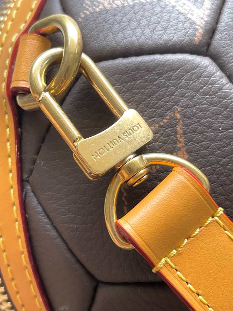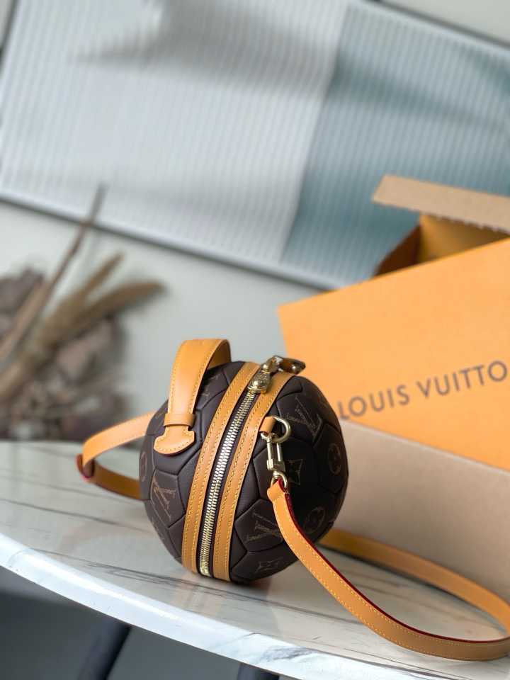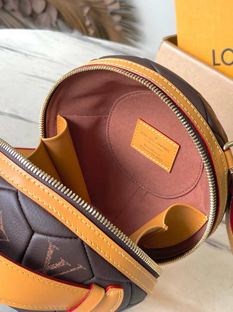 1570代购级免税版 M13894 这款SoccerBall gx手袋由柔软的牛皮革与做旧WT皮革精心打造,于2025春夏系列发布秀上由Pharrell Wiliams亲自揭幕。细细品味,包身采用印有经典Monogram图案的牛皮革,精选品牌标志性的帆布材质,并巧妙放大Monogram图案,呈现别具一格的视觉韵味。既可斜挎,亦可手提,兼具优雅与实用。尺寸:19 × 19 × 19 cm