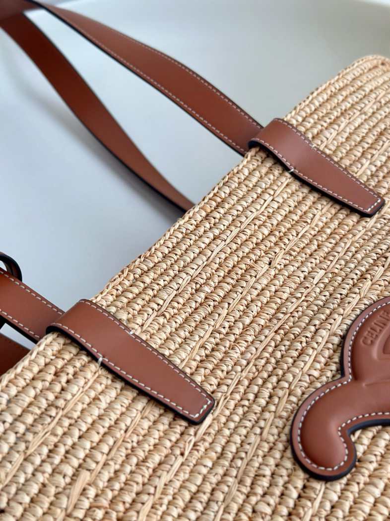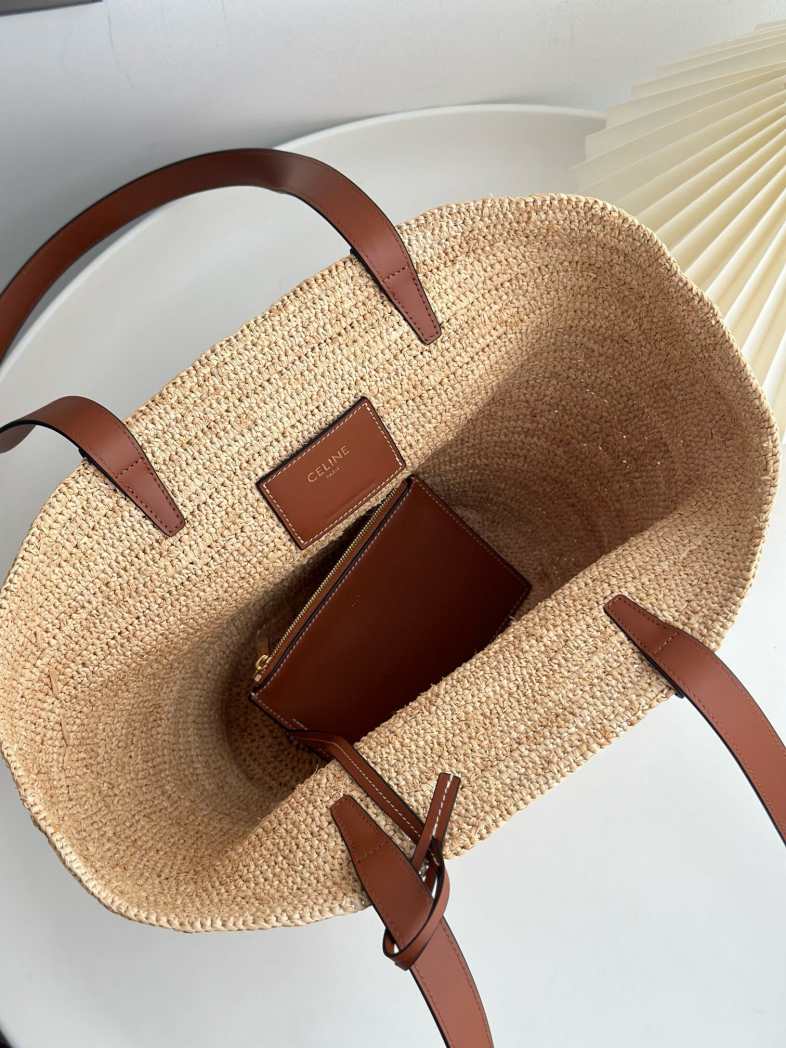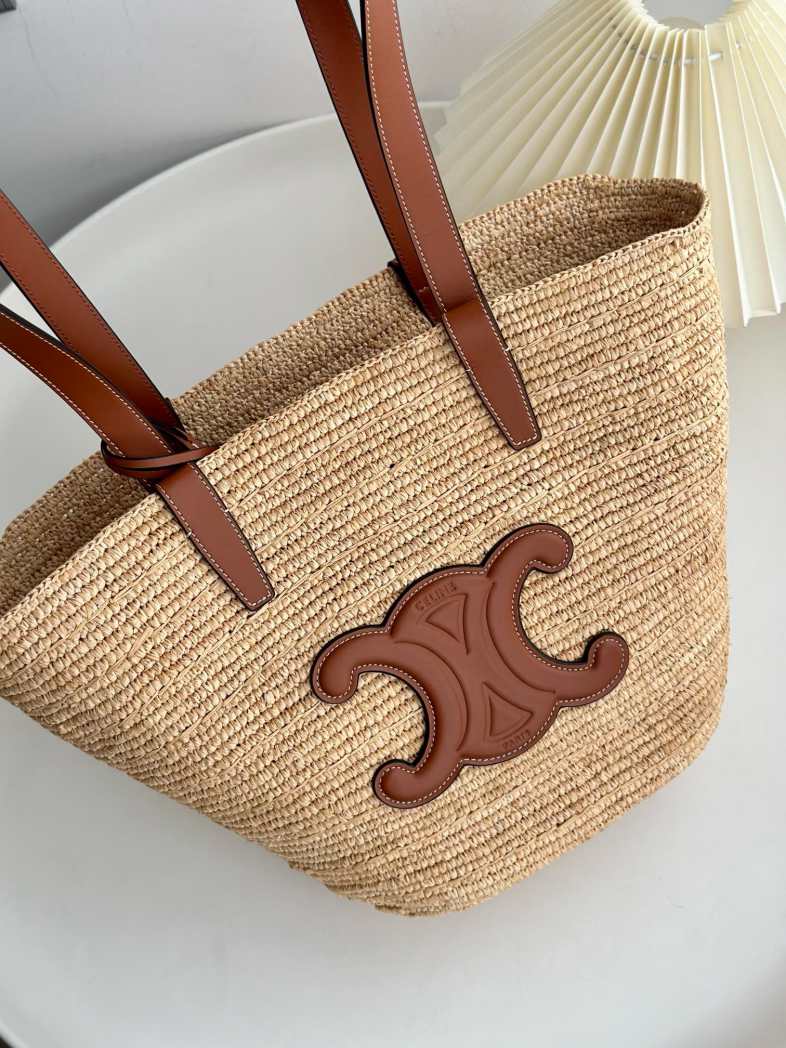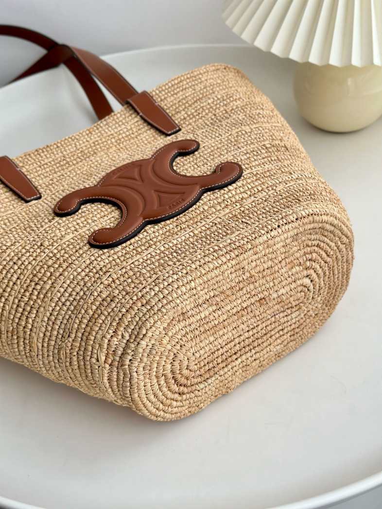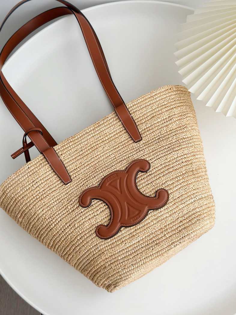 现货供应 CELINE 拼接植物材料和牛皮革中号柔软经典提篮包 盛夏是属于草编包的?????? CELINE新款大号草编菜篮子包 正品一比一打版 满分质感 细节精致 可盐可甜 法式优雅 氛围感拉满?? 相比较以往的草编包手感更加细腻 材质更加柔软 夏天必备? 天然草纯手工拼接编织+立体凯旋门复古皮标+小内袋包 ??注:手工编织手袋,每件作品皆别具一格。尺寸和造型可能稍有差异。 植物材料,牛皮革包边,无衬里,金色饰面,肩背,1个内侧可拆卸皮革拉链口袋,2个皮革提手长35厘米 尺寸:22 X 30 X 14厘米 编号:114342