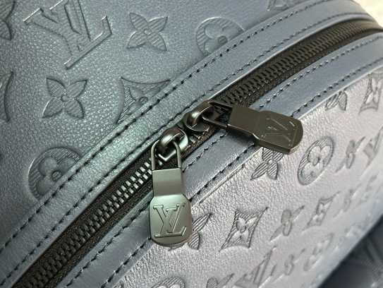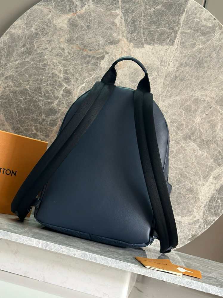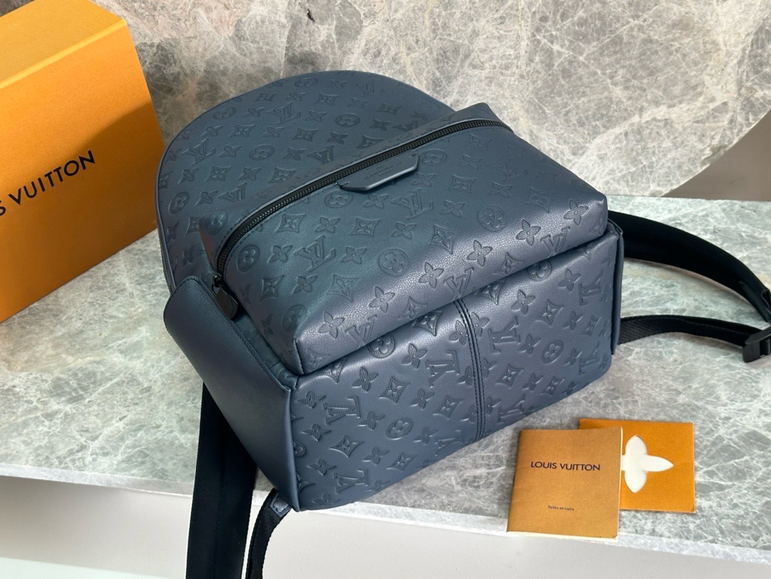 【163C01 芯片版】 : M14884深蓝色, 原单加强版??【独家实拍背景图】?本款 Discovery 小号双肩包以 Monogram Shadow 压纹牛皮革塑造宽敞空间与圆润构型 借 Monogram 压纹含蓄展露品牌风范 大号拉链前袋和开放式侧袋实现便捷取放 织物内衬与内贴袋丰富考究细节 size:38x29x20cm
