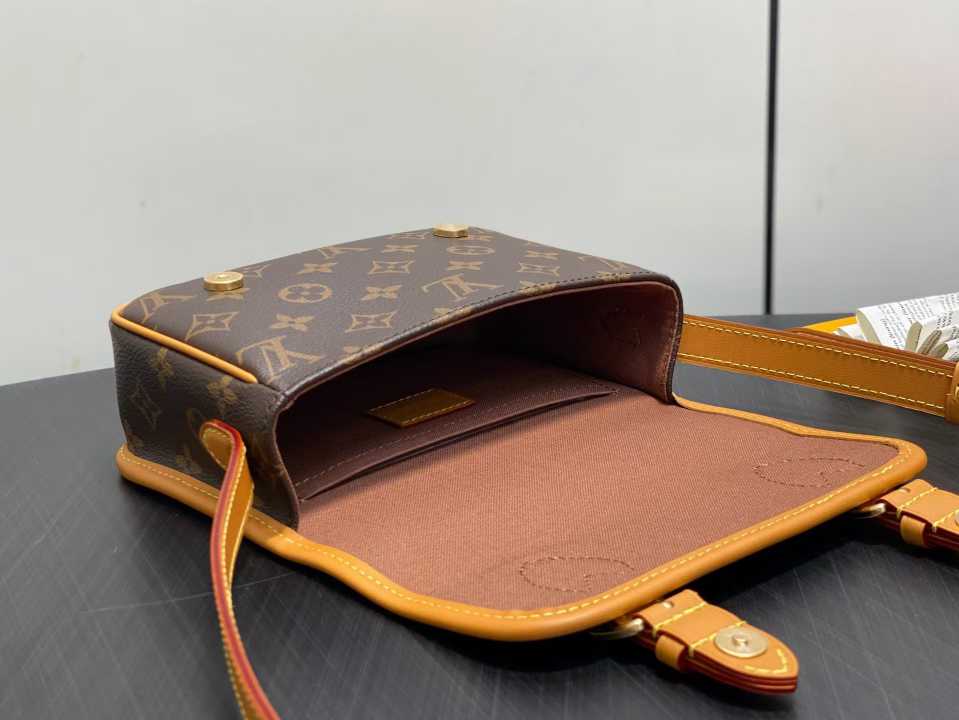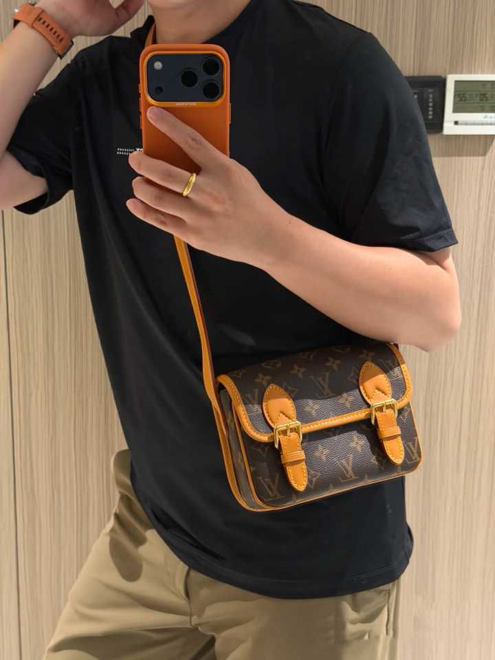 ,原单加强版+半钢五金【SATCHEL 迷你手袋】 m26805 本款 Satchel 迷你手袋出自 Monogram Archive 系列,为柔软 Monogram 帆布包身搭配做旧皮革饰边和耀目金属件。迷你邮差包构型可容纳手机及钱夹等日常用品。可调节肩带确保舒适肩背或斜跨。 尺寸:15 x 6 x 19.5 厘米 (高 x 宽 x 长度)