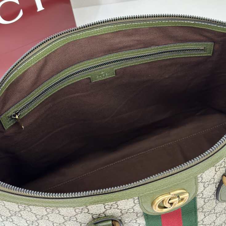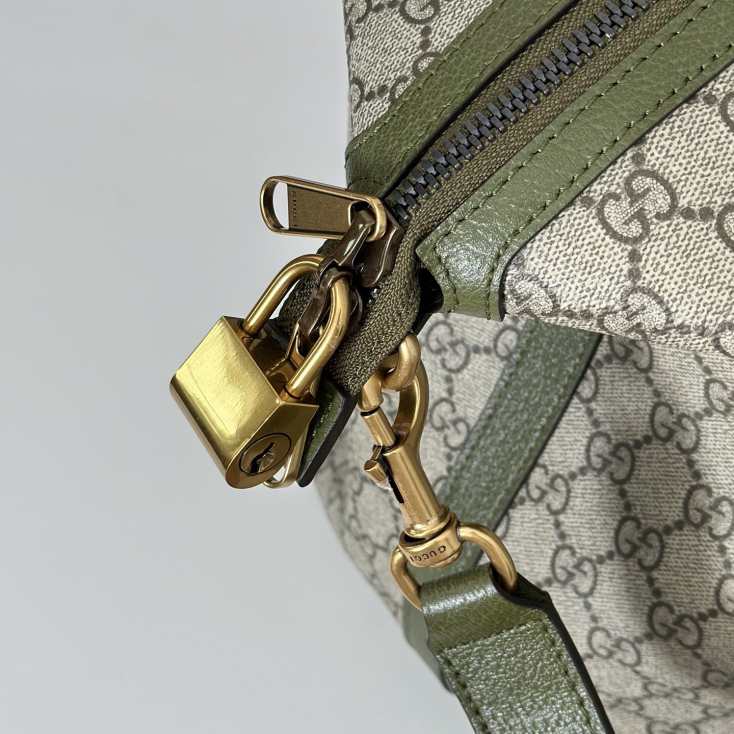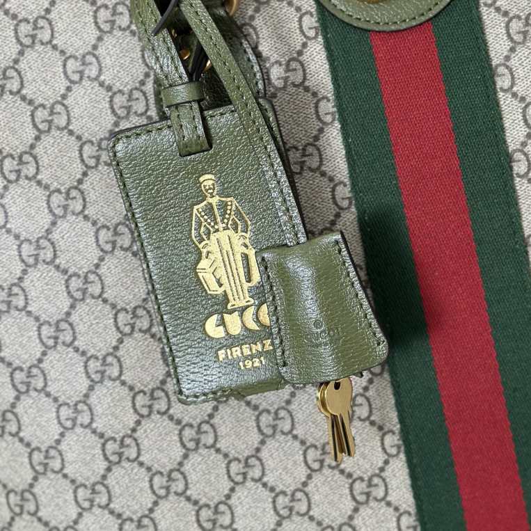 ??《配全套原厂礼品袋包装》??【新品】Gucci Savoy系列匠心融蕴米色和深棕色两大配色,搭配经典廓形,甄选触感柔软的织物打造。这款旅行包以GG字母交织图案涂层织物打造,匠心缀饰双G标识和织带细节。 米色和深棕色GG字母交织图案涂层织物 绿色皮革滚边 黄铜色调配件 绿色亚麻棉混纺衬里 双G 织带细节 内部:一个拉链袋 外部:一个可拆卸行李员身份标牌、一个锁、一个钥匙扣 提手高度:9厘米 可拆卸可调节皮革肩带(高度可在121.5厘米至136.5厘米之间调节) 拉链开合 型号:834469。 尺寸:48厘米(宽)x 28厘米(高)x 18厘米(深) 重量:约1.6千克 颜色:啡绿/pvc。 意大利创作