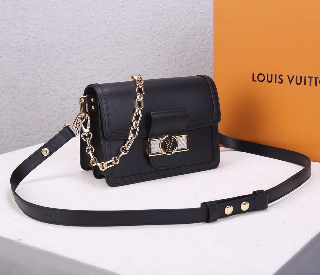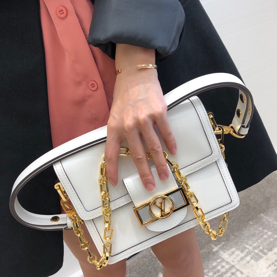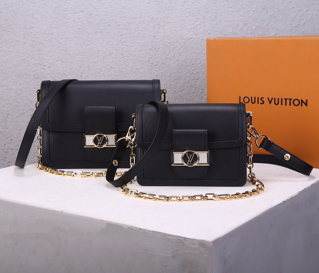 女包??最新,原版开发????畅览2020早春系列,细数经典设计焕新。本款 Dauphine 中号手袋取材 Lugano 皮革,优雅烘托 LV Circle 锁扣。光滑小牛皮—光滑小牛皮饰边—超细纤维内衬—可拆卸、可调节肩带,可肩背或斜挎—内隔层—拉链袋—后侧内贴袋!!型號:M55821;尺寸:25x17x10.5CM 5073