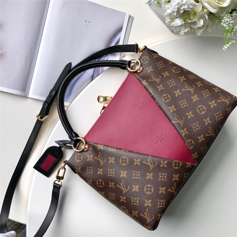 M43949 LV V Tote MM手袋 LV Monogram帆布老花女包 LV女包 酒红色